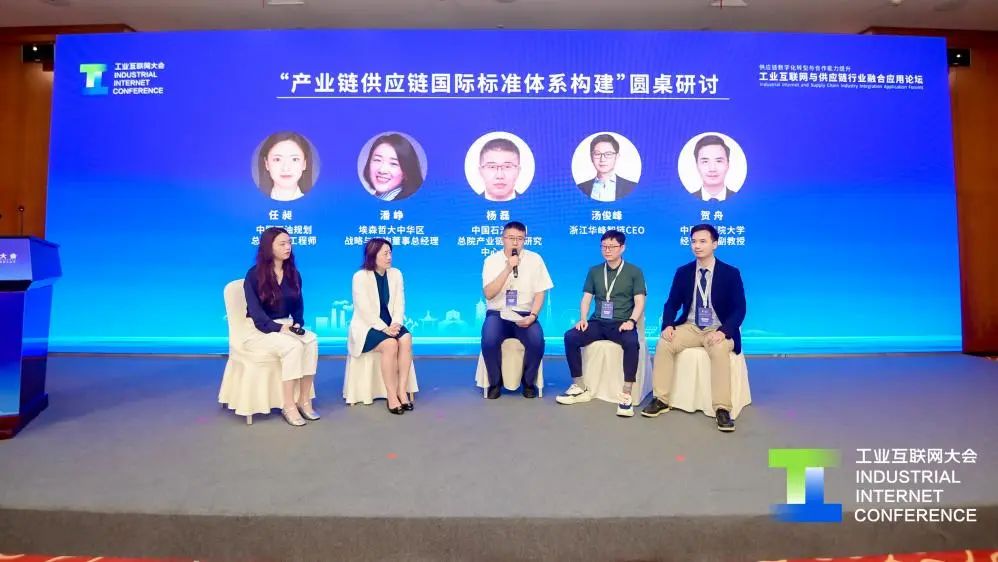 在“產業鏈供應鏈國際標準體系構建”圓桌研討環節,埃森哲大中華區戰略與咨詢董事總經理潘崢、中國石油規劃總院產業鏈優化研究中心主任楊磊和高級工程師任昶、浙江華峰智鏈CEO湯俊峰、中國科學院大學經管學院副教授賀舟圍繞產業鏈和供應鏈在標準化工作方面的側重點、標準化工作的設計和實施建議進行了深入討論。