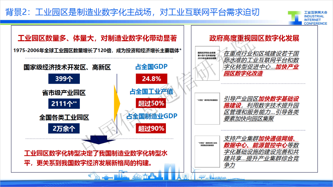 當前,工業(yè)互聯(lián)網進入應用推廣關鍵期,圍繞行業(yè)、區(qū)域形成了兩條推廣路徑,其中工業(yè)園區(qū)具有數(shù)量多、體量大的特點,對制造業(yè)數(shù)字化帶動效果顯著,已成為工業(yè)互聯(lián)網區(qū)域應用落地的關鍵載體。