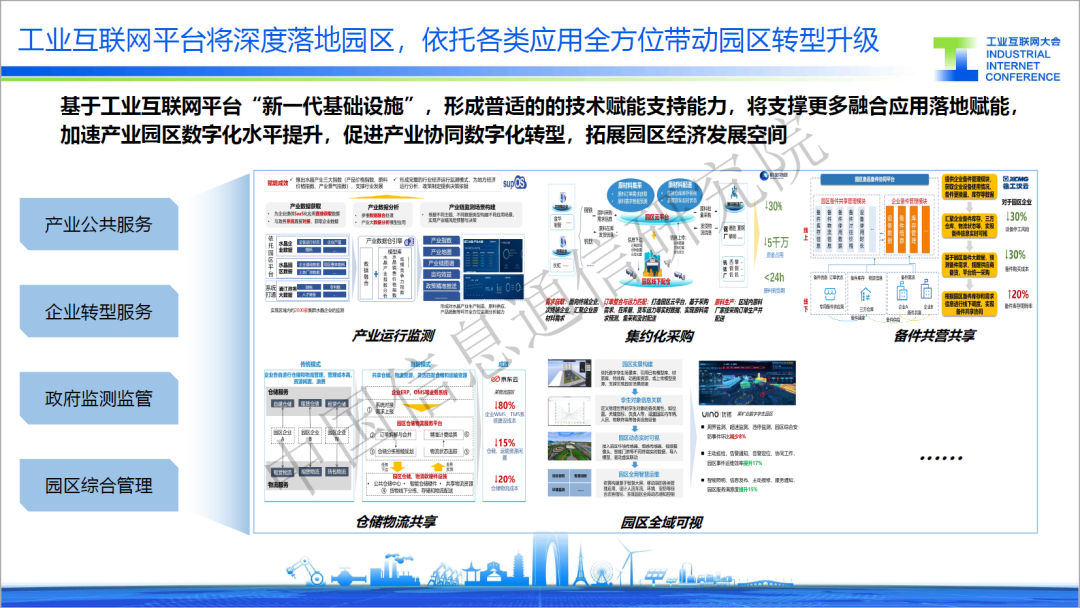 此外,“典型場景”中還包括產業(yè)運行監(jiān)測、集約化采購、備件共營共享、倉儲物流共享、園區(qū)全域可視等重點應用場景。