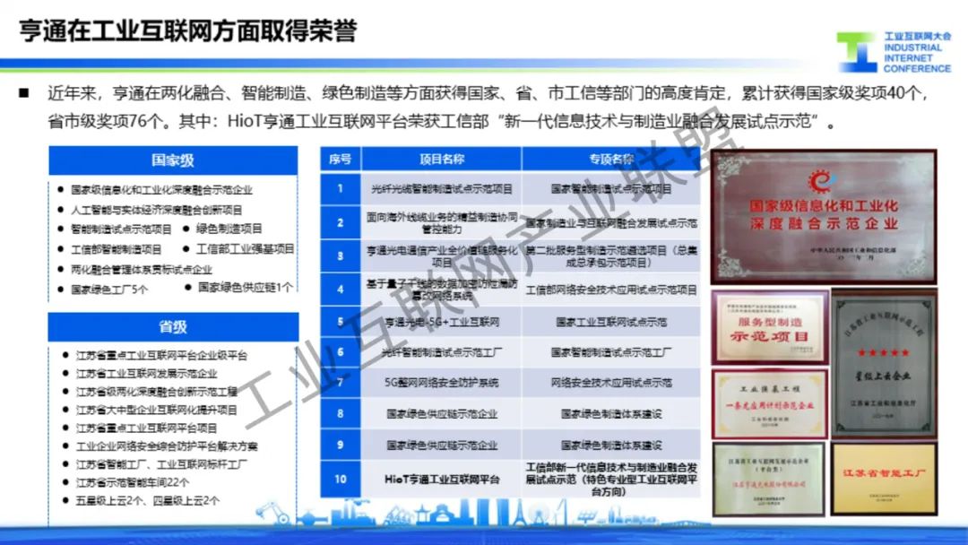 6月16日上午,亨通集團執行總裁錢建林以“全面擁抱工業互聯網,激發企業發展新動能”為題,在2023工業互聯網大會工業互聯網趨勢洞察與路徑探索高峰對話上作主題演講。結合亨通在工業互聯網賦能企業數字化、信息化、智能化發展的實踐經驗和成果案例,依托5G+工業互聯網的融合應用、縱深發展優勢,在內率先實現智能化改造數字化升級,打造了一批批智能制造示范工廠、工業互聯網平臺,為企業高質量發展提供了新模式,增添了新動能;在外憑借工業互聯網的先進技術優勢,重點打造亨通HioT工業互聯網平臺,以產業數字化迭代升級賦能行業高質量發展。錢建林表示,亨通HioT工業互聯網平臺以“江蘇亨通數字智能科技有限公司”(簡稱:亨通數科)為載體,從工業互聯網賦能智能制造、綠色生產、智慧產業園區、中小企業數字化水平等領域,聚焦行業痛點,為13個行業提供67項最佳實踐解決方案,將亨通的經驗和成果分享給各行業、各企業。未來,亨通將加快構建更高水平、更廣范圍、更深層次的制造業數字化發展格局,助力形成具有全球競爭力的“5G+工業互聯網”產業集群,推動加快建設制造強國、網絡強國,在中國式現代化新實踐中再作新的更大貢獻。