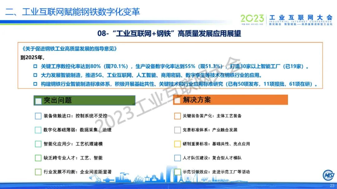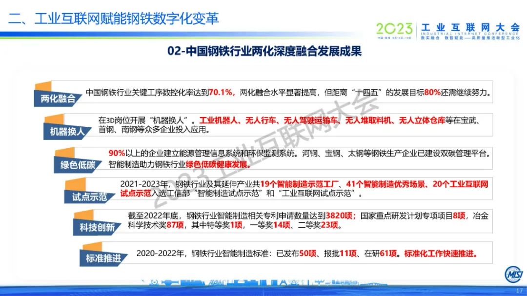 6月15日,在2023工業(yè)互聯(lián)網大會“工業(yè)互聯(lián)網最佳實踐高端論壇”上,中國鋼鐵工業(yè)協(xié)會副秘書長,冶金工業(yè)信息標準研究院黨委書記、院長張龍強發(fā)表了《“工業(yè)互聯(lián)網+鋼鐵”的高質量發(fā)展應用實踐》的主題演講。