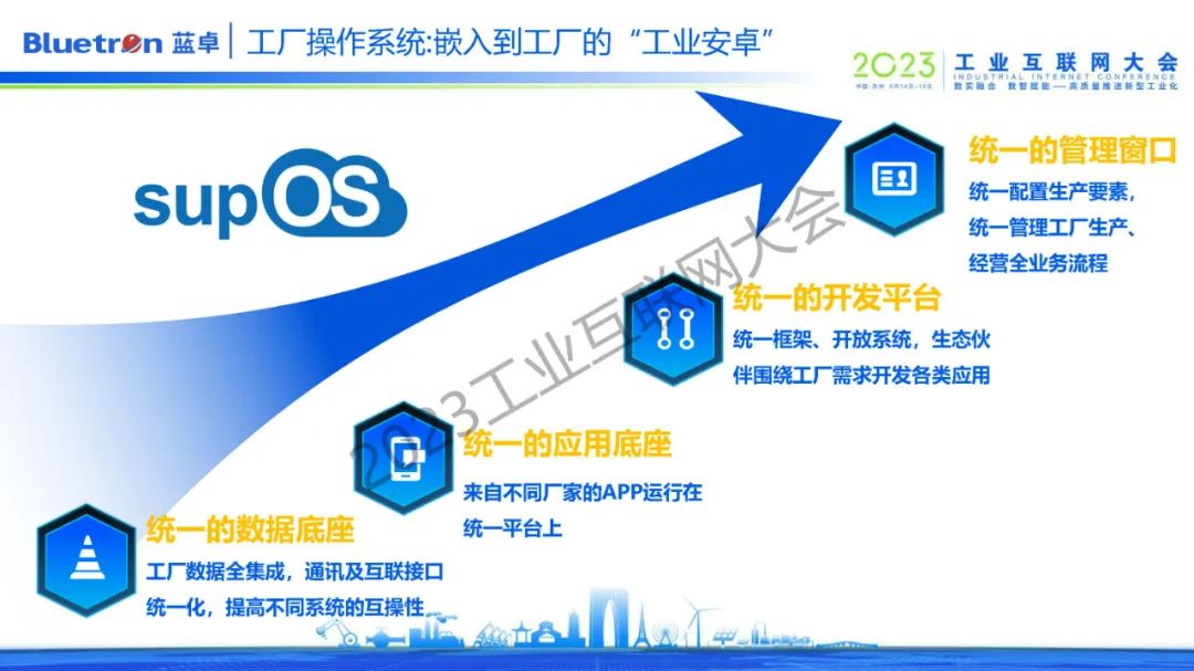 第一,打造行業(yè)標(biāo)桿。藍(lán)卓暢想的未來(lái)工廠(chǎng)是基于supOS工業(yè)操作系統(tǒng)實(shí)現(xiàn)生產(chǎn)制造自動(dòng)化和經(jīng)營(yíng)管理自動(dòng)化的貫通,以此解決工業(yè)企業(yè)數(shù)據(jù)的問(wèn)題,技術(shù)使用的問(wèn)題。