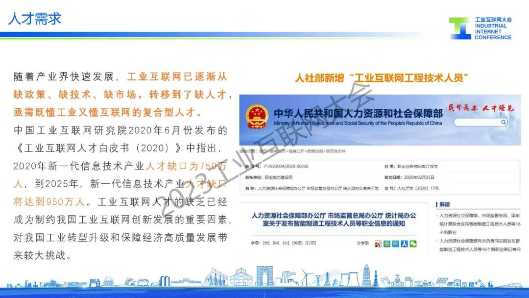 隨著產(chǎn)業(yè)界快速發(fā)展,工業(yè)互聯(lián)網(wǎng)已逐漸從缺政策、缺技術(shù)、缺市場,轉(zhuǎn)移到了缺人才,亟需既懂工業(yè)又懂互聯(lián)網(wǎng)的復(fù)合型人才。