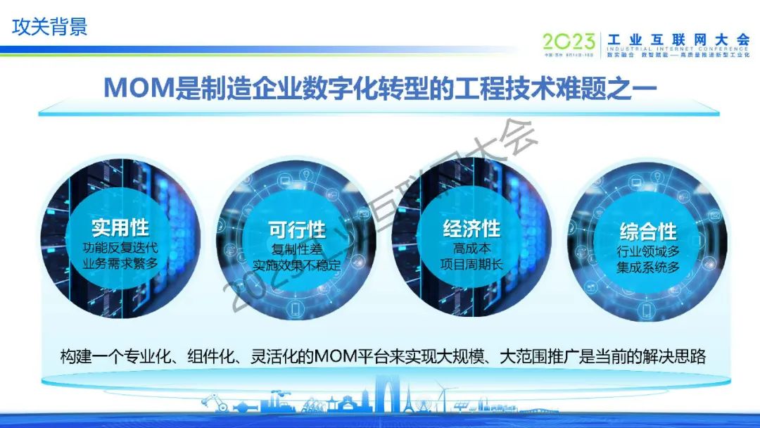 劉淑英表示,面對制造企業數字化轉型中MOM系統落地慢、周期長、成本高、人才缺等工程技術難題,構建一個專業化、組件化、靈活化的MOM平臺是解決問題的方向,要致力于打造一個數據業務可拉通、經驗能力可沉淀、應用開發可繼承、制造平臺可演進的“四可”制造運營管理平臺,讓程序主動適應業務訴求,降低企業定制化成本,促進整個產業的數字化、智能化、協同化,加快我國新型工業化的推動進程。