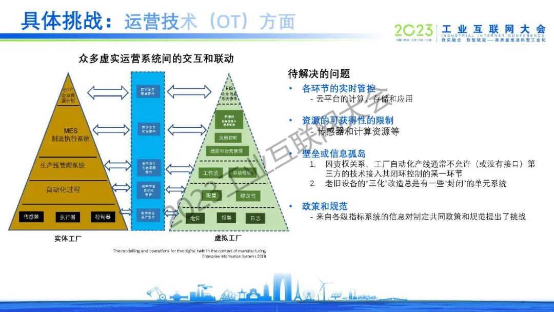 沈八中表示通信技術、信息技術、 數字技術(數據可視化技術)和運營技術的融合是數字孿生工業要素互聯互動的前提。人工智能工具是數字孿生中數據處理和交互的關鍵。當今人工智能除了已經發展成熟的深度學習、強化學習、遷移學習和循環學習等機器學習算法外,新型的以全概率和大型模型為基礎的生成式人工智能將起到決定性的作用。為讓全國乃至全球數字孿生技術的共同發展,我們應考慮建立自主的虛實接口、虛實同步和虛實交互的功能的標準。
