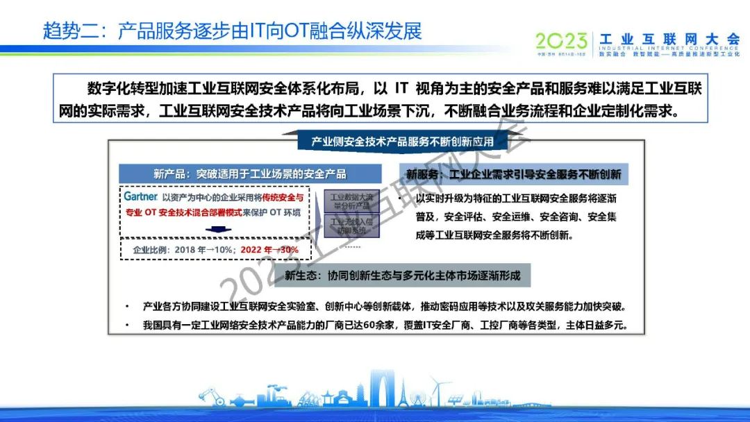 柯皓仁表示,工業互聯網在推動數字經濟和實體經濟深度融合過程中,其網絡安全能力既是基礎支撐,是實現高質量發展的必要前提,也是賦能增量,是助推數字化進程的重要動能。數字化轉型加速工業互聯網安全體系化布局,以 IT 視角為主的安全產品和服務難以滿足工業互聯網的實際需求,工業互聯網安全技術產品將向工業場景下沉,不斷融合業務流程和企業定制化需求。