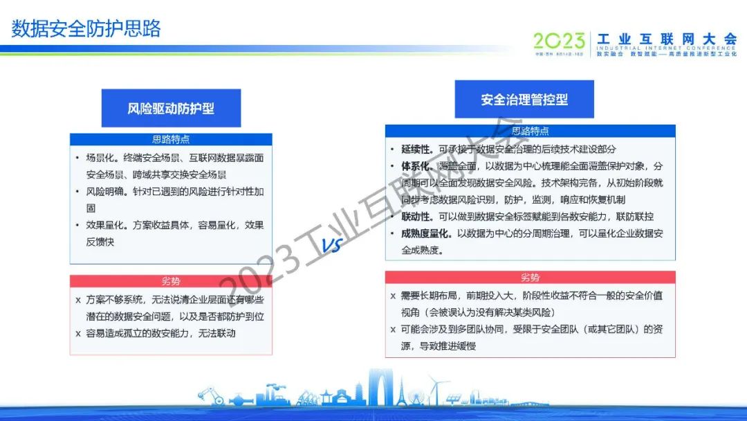 “遵循數據安全原則,以數據安全分級為基礎,實現覆蓋數據生命周期全過程的數據自身安全,并結合業務活動安全、基礎安全、安全運營,建立“三橫三縱”的工業互聯網數據安全防護體系,全面加強工業數據安全保護能力。”