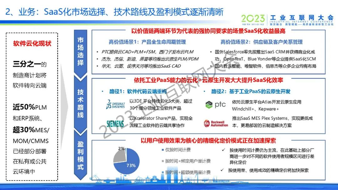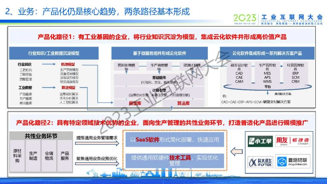 “工業(yè)互聯(lián)網(wǎng)平臺(tái)產(chǎn)品化的兩條路徑:一是有工業(yè)基因的企業(yè),將行業(yè)知識(shí)沉淀為模型,集成云化軟件并形成高價(jià)值產(chǎn)品;二是具有特定領(lǐng)域技術(shù)優(yōu)勢(shì)的企業(yè),面向生產(chǎn)管理的共性業(yè)務(wù)環(huán)節(jié),打造普適化產(chǎn)品進(jìn)行規(guī)模推廣。”
