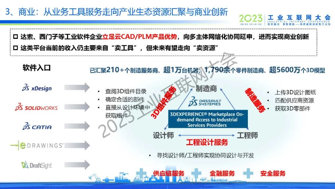 侯羽菲表示,工業(yè)互聯(lián)網(wǎng)平臺(tái)技術(shù)以應(yīng)用開發(fā)、智能算法引擎為代表的根技術(shù)能力正在加速升級(jí)。業(yè)務(wù)方面,三分之一的制造商計(jì)劃將軟件轉(zhuǎn)向云端。近50%PLM和ERP系統(tǒng)、超30%MES/ MOM/CMMS已經(jīng)部分部署在私有或公共云環(huán)境中。而未來應(yīng)充分發(fā)揮我國制造業(yè)龍企業(yè)數(shù)據(jù)、場(chǎng)景優(yōu)勢(shì)、電商企業(yè)資源優(yōu)勢(shì),加快補(bǔ)齊、增強(qiáng)、創(chuàng)新我國數(shù)字化服務(wù)商的技術(shù)產(chǎn)品能力,探索形成我國工業(yè)互聯(lián)網(wǎng)平臺(tái)發(fā)展的特色路徑。
