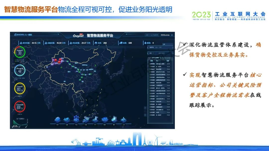 “智慧物流服務平臺可實現物流全程可視可控,促進業(yè)務陽光透明,確保貨物受控及業(yè)務真實,并實現核心運營指標、公司關鍵風險預警及客戶全程物流需求在線跟蹤展示。”