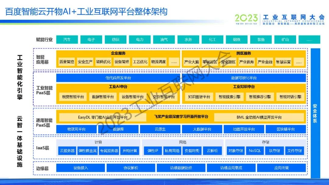 “百度智能云開物工業(yè)互聯(lián)網(wǎng)平臺(tái),以人工智能為特色,加速產(chǎn)業(yè)智能化升級(jí),助力園區(qū)高質(zhì)量發(fā)展。“