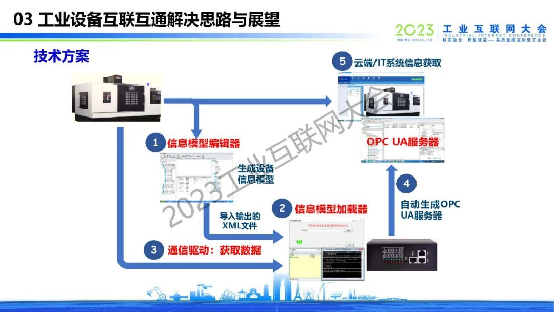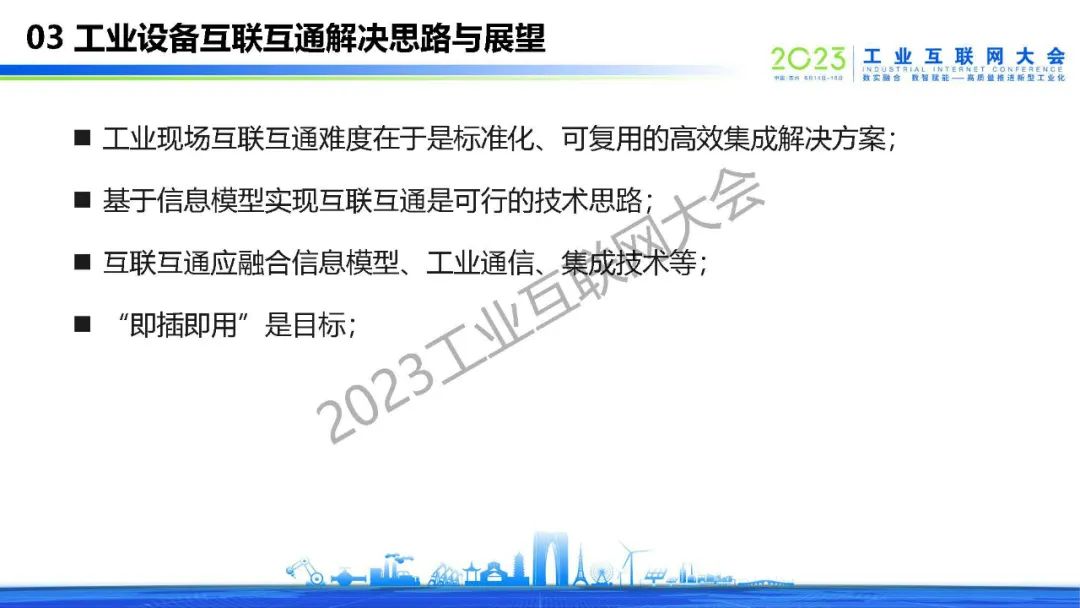 王麟琨表示,現(xiàn)場(chǎng)設(shè)備互聯(lián)互通是實(shí)施智能制造、工業(yè)互聯(lián)網(wǎng)的基礎(chǔ),互聯(lián)互通包含語(yǔ)義數(shù)據(jù)互聯(lián)互通,是提升工業(yè)數(shù)據(jù)利用率的關(guān)鍵。工業(yè)設(shè)備互聯(lián)互通解決思路是數(shù)據(jù)字典+信息模型+描述格式+通信驅(qū)動(dòng),從而形成通用集成方案。