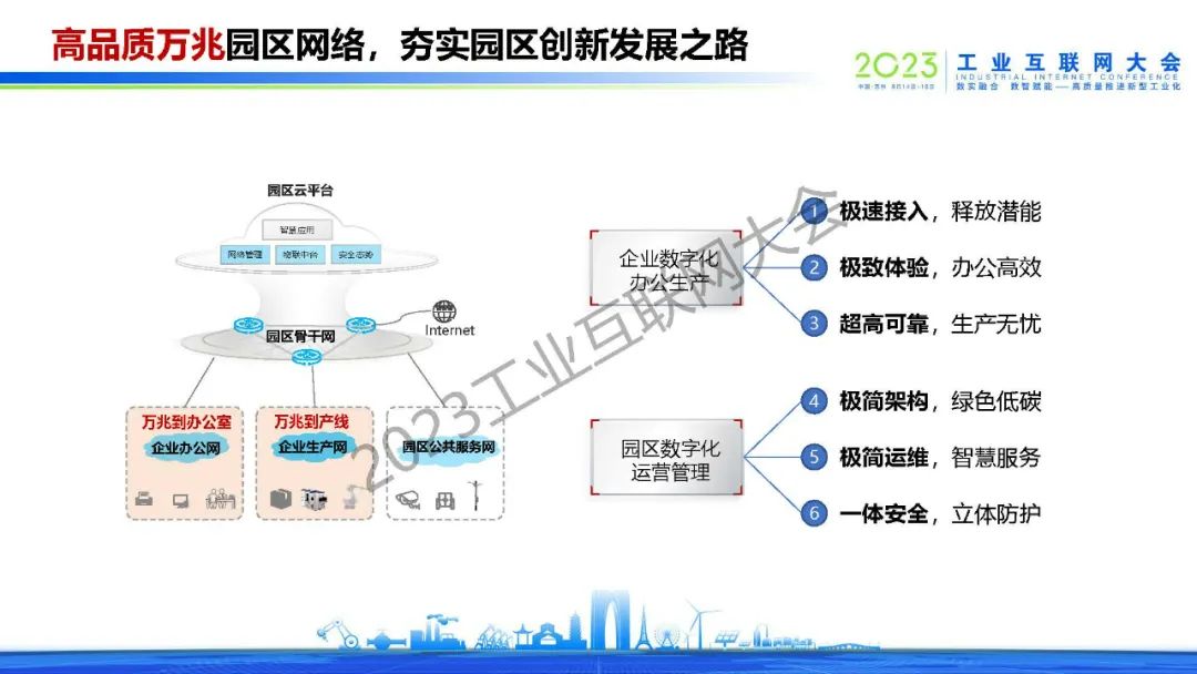 “集約化建設的園區網絡,既要服務好企業數字化辦公、數字化生產,也要支撐好園區自身高效運營管理。“