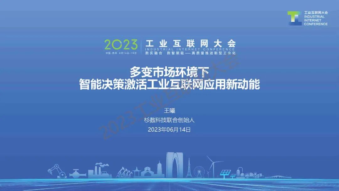 6月14日,在2023工業(yè)互聯(lián)網(wǎng)大會(huì)“工業(yè)互聯(lián)網(wǎng)產(chǎn)融推進(jìn)論壇”上,北京杉數(shù)科技有限公司聯(lián)合創(chuàng)始人、首席產(chǎn)品官(CPO)王曦發(fā)表了《多變市場(chǎng)環(huán)境下,智能決策激活工業(yè)互聯(lián)網(wǎng)應(yīng)用新動(dòng)能》的主題演講。