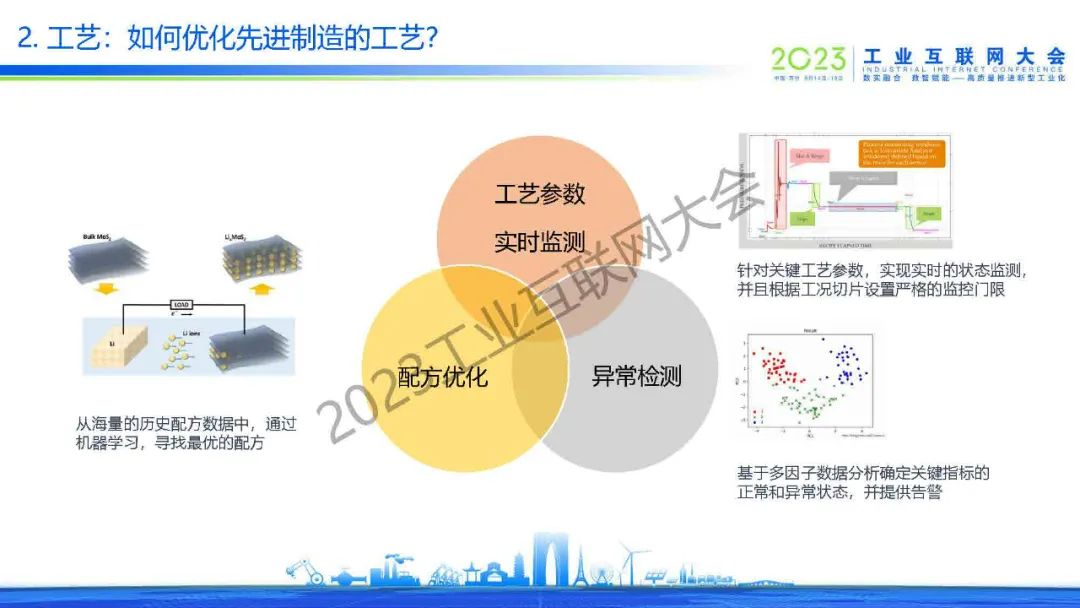 時(shí)培昕指出,提高裝備的智能化程度需要通過(guò)智能控制、預(yù)測(cè)性維護(hù)、數(shù)字孿生和專家知識(shí)庫(kù)這四個(gè)方面。他也提到,優(yōu)化先進(jìn)制造的工藝需要配方優(yōu)化、工藝參數(shù)實(shí)時(shí)監(jiān)測(cè)和異常檢測(cè)來(lái)達(dá)成。