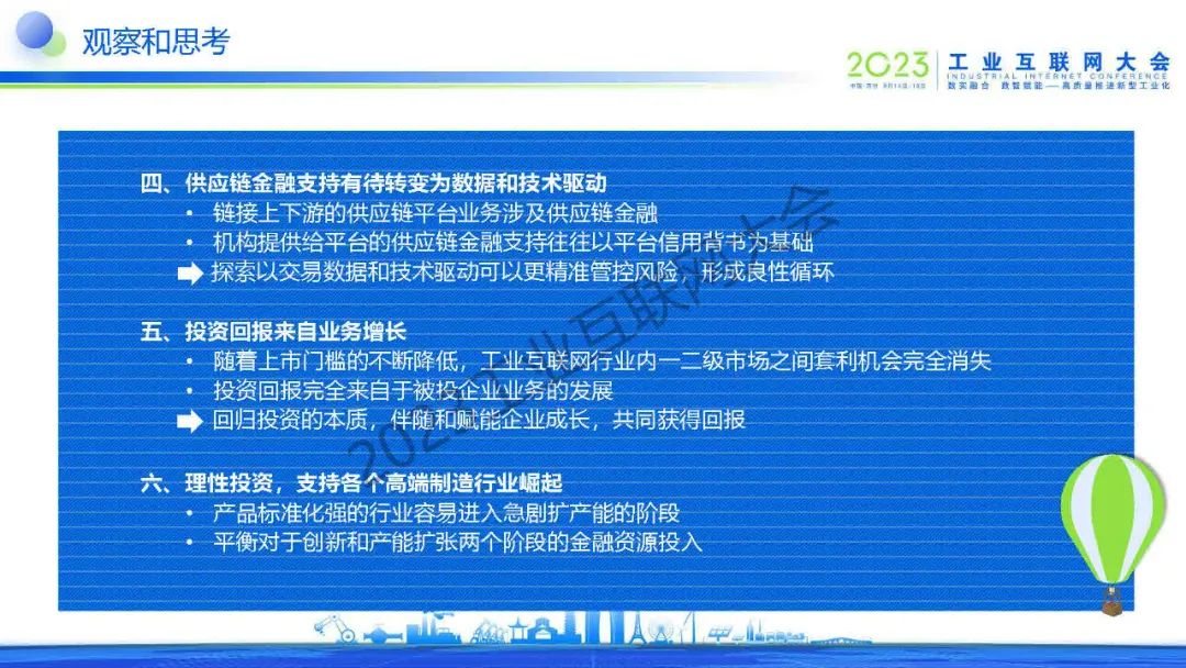 “隨著上市門檻的不斷降低,工業(yè)互聯(lián)網(wǎng)行業(yè)內(nèi)一二級(jí)市場之間套利機(jī)會(huì)完全消失,投資回報(bào)完全來自于被投企業(yè)業(yè)務(wù)的發(fā)展。行業(yè)將回歸投資的本質(zhì),伴隨和賦能企業(yè)成長,共同獲得回報(bào)。“