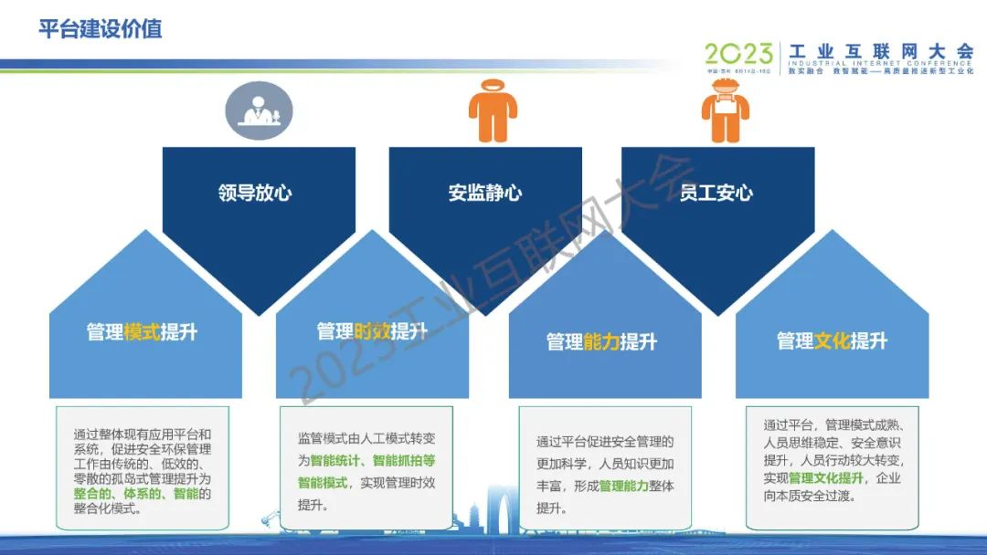 許勉表示,化工行業數智化不是一蹴而就的事情,而是一個不斷完善的過程。底層基礎決定上層建筑,走好第一步非常重要。從“互聯”和“安全”為出發點,采用“用平臺規范、用智能管控、用數據指導、用工具提效”的建設思路,圍繞人員、設備(環境)、作業、管理、綜合應用、應急六個方面,構建“實用、管用、好用”的云智一體化平臺。在“六層防護、五道保險、四重管控、四個融合、三大應用、兩步處置”合力加持下,構筑全流程數字安全堅實屏障,為化工園區、企業建立最具價值的智能安全管控平臺。