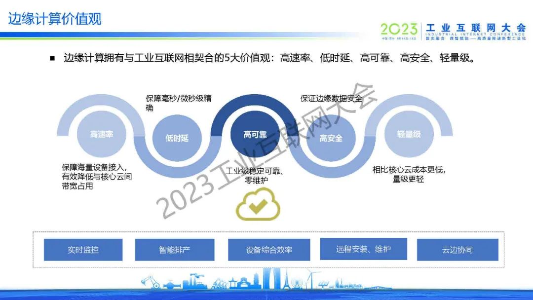 “邊緣計算擁有與工業(yè)互聯(lián)網(wǎng)相契合的5大價值觀:高速率、低時延、高可靠、高安全、輕量級。“
