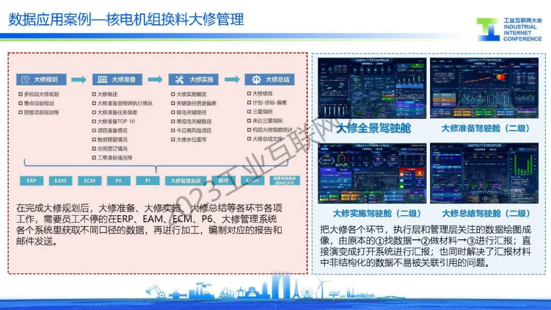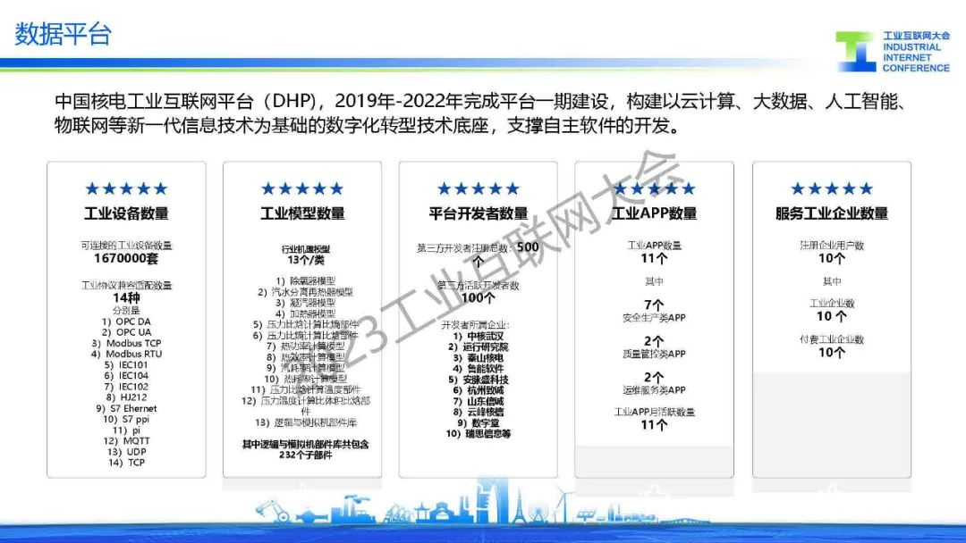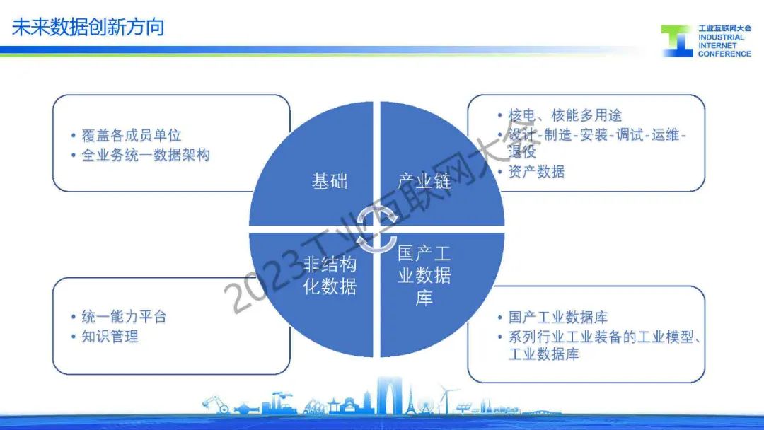劉旭嘉介紹中國核電工業互聯網平臺(DHP),2019年-2022年完成平臺一期建設,構建以云計算、大數據、人工智能、物聯網等新一代信息技術為基礎的數字化轉型技術底座,支撐自主軟件的開發。核能工業數據創新目標是支撐公司全面數字化轉型,實現全業務域數字創新。