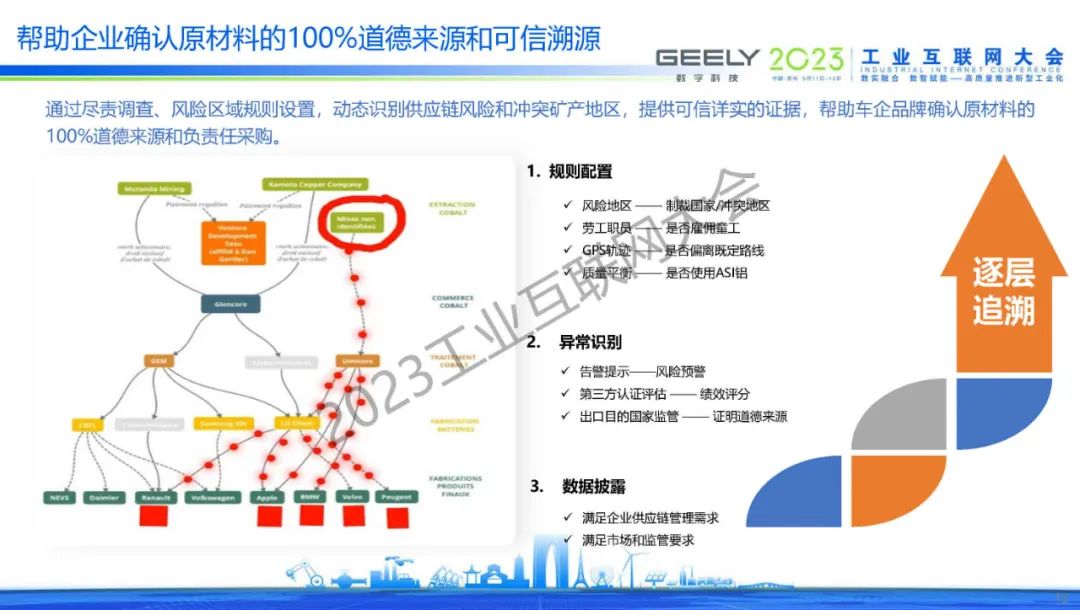 6月16日,在2023工業互聯網大會“工業互聯網+區塊鏈創新發展論壇”上,無錫吉利數字科技有限公司產品總監賽磊發表了《基于區塊鏈的工業互聯網產業供應鏈溯源云平臺實踐》的主題演講。