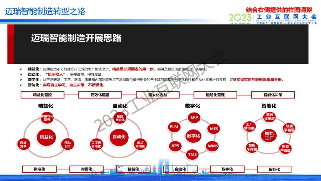6月15日,在2023工業互聯網大會“工業互聯網助力醫療裝備供應鏈安全治理論壇”上,邁瑞醫療股份有限公司醫療服務創新發展專家陳松青發表了《邁瑞智能制造建設之路介紹》的主題演講。