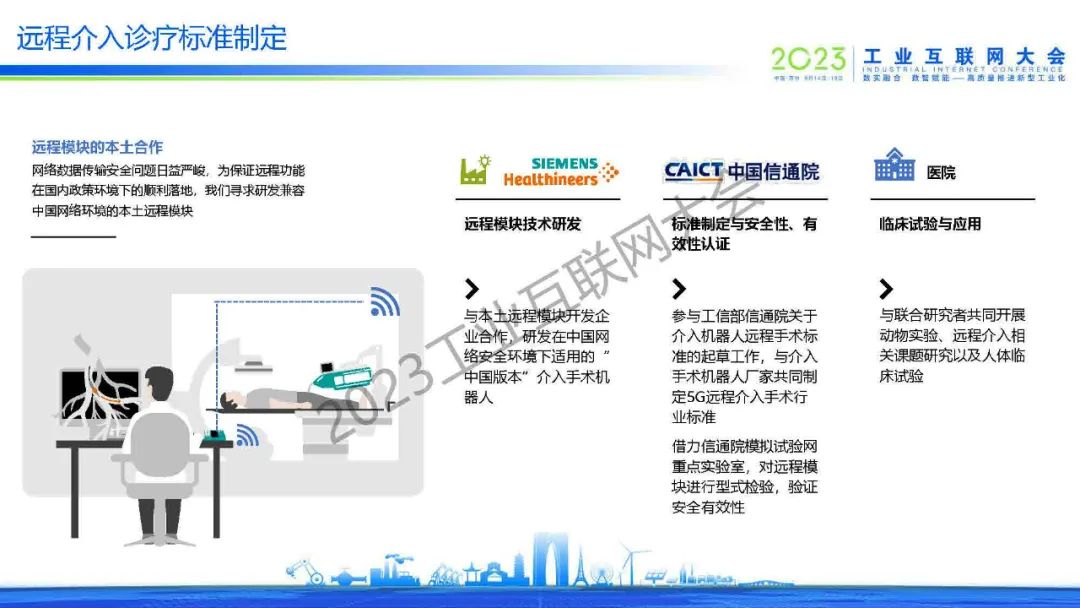 6月15日,在2023工業(yè)互聯(lián)網(wǎng)大會(huì)“工業(yè)互聯(lián)網(wǎng)助力醫(yī)療裝備供應(yīng)鏈安全治理論壇”上,西門(mén)子醫(yī)療器械有限公司臨床治療業(yè)務(wù)領(lǐng)域戰(zhàn)略負(fù)責(zé)人鄂冬發(fā)表了《介入診療遠(yuǎn)程標(biāo)準(zhǔn)及可移動(dòng)醫(yī)療模式探討》的主題演講。