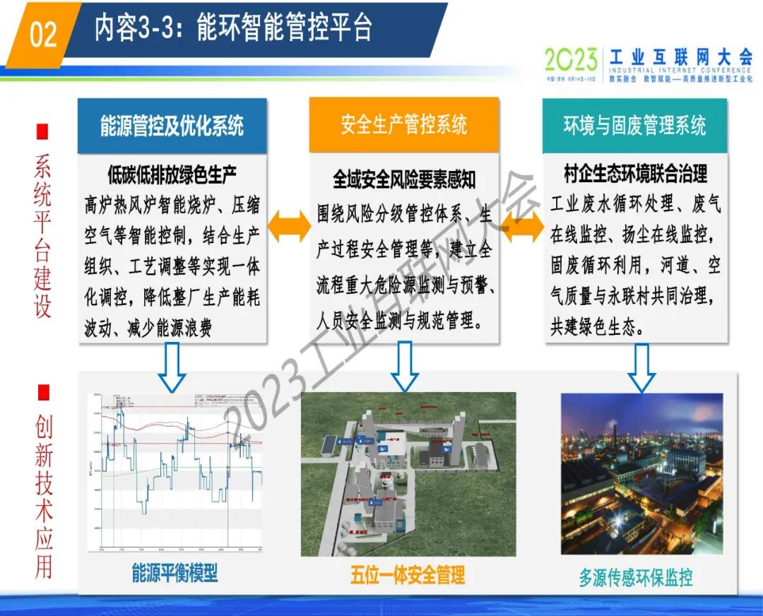 “環(huán)境與固廢管理系統(tǒng)是通過村企生態(tài)環(huán)境聯(lián)合治理,將工業(yè)廢水循環(huán)處理、廢氣在線監(jiān)控、揚塵在線監(jiān)控,固廢循環(huán)利用,河道、空氣質(zhì)量與永聯(lián)村共同治理,共建綠色生態(tài)。”