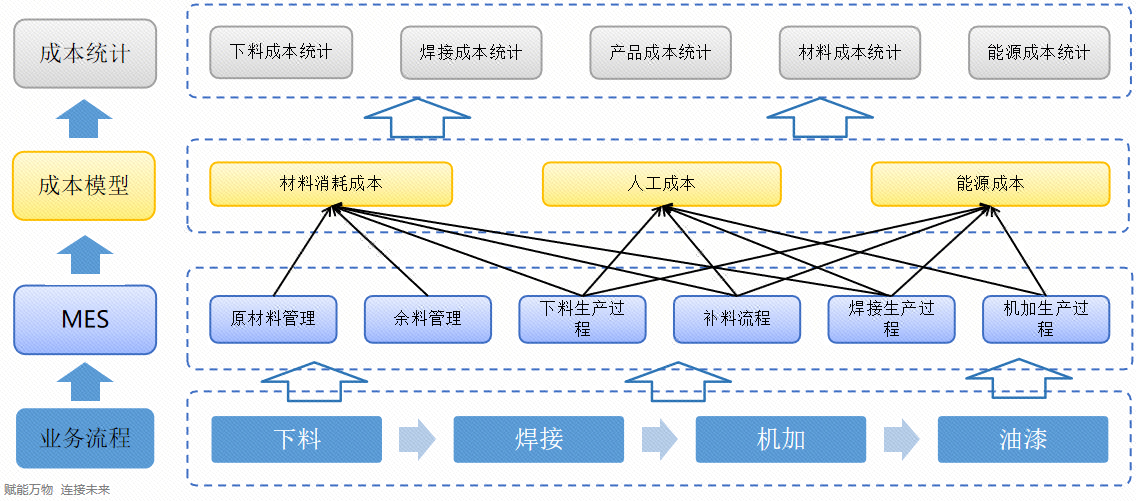 通過建立生產成本分析模型,并對制造成本進行細化,輸出制造實際成本分析,為制造改進實施提供數據支持??砂凑丈a過程下料、焊接、機加等工序段進行記錄與統計。