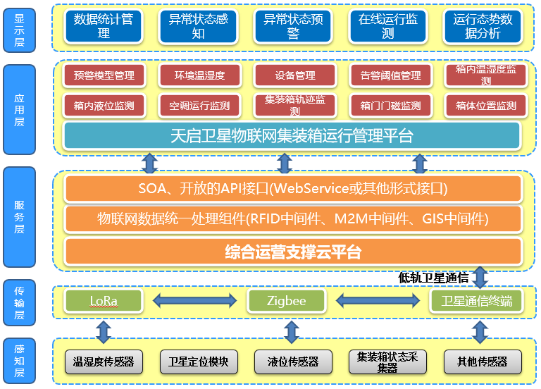 圖1:天啟衛(wèi)星物聯(lián)網(wǎng)集裝箱供應(yīng)鏈管理系統(tǒng)技術(shù)架構(gòu)