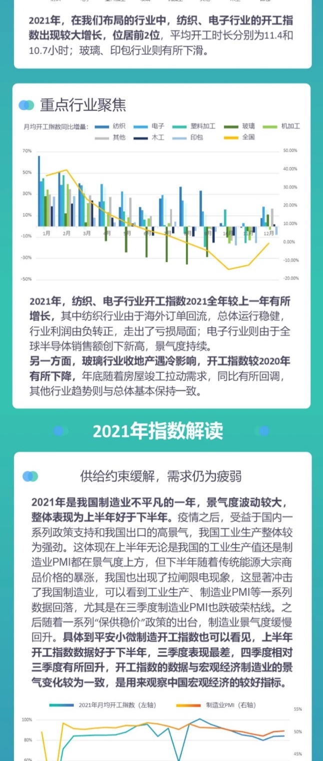 2020年3月,疫情期間“塔比智造”平臺基于設備手環的監測數據,聯合平安租賃、平安銀行發布“安指數-復工指數”,對29個省、5000余家存量中小微制造企業進行回訪,結合“設備手環”收集的26個三級子行業、近萬臺設備的運行數據,同步參考各地政府開工管控措施,推算出企業的復工指數以及制造業各主要細分行業的設備開機比率,聯合金融機構為全國300余家首批復工且有生產性資金周轉需求的客戶提供綠色融資通道,在一個月左右的時間內累計投放1.5億元普惠貸款,助力中小微制造業客戶快速復工復產。