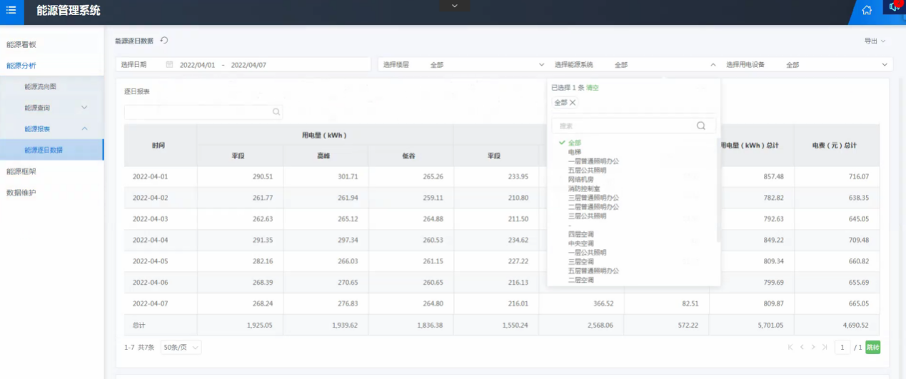 智慧能源管理系統(tǒng)以管理為中心,采集匯總系統(tǒng)的能耗數(shù)據(jù),上傳到能源管理中心進行歸納、分析和整理,在整體功能上體現(xiàn)對建筑能源的來源、流向和使用各個環(huán)節(jié)的監(jiān)測、統(tǒng)計及分析。