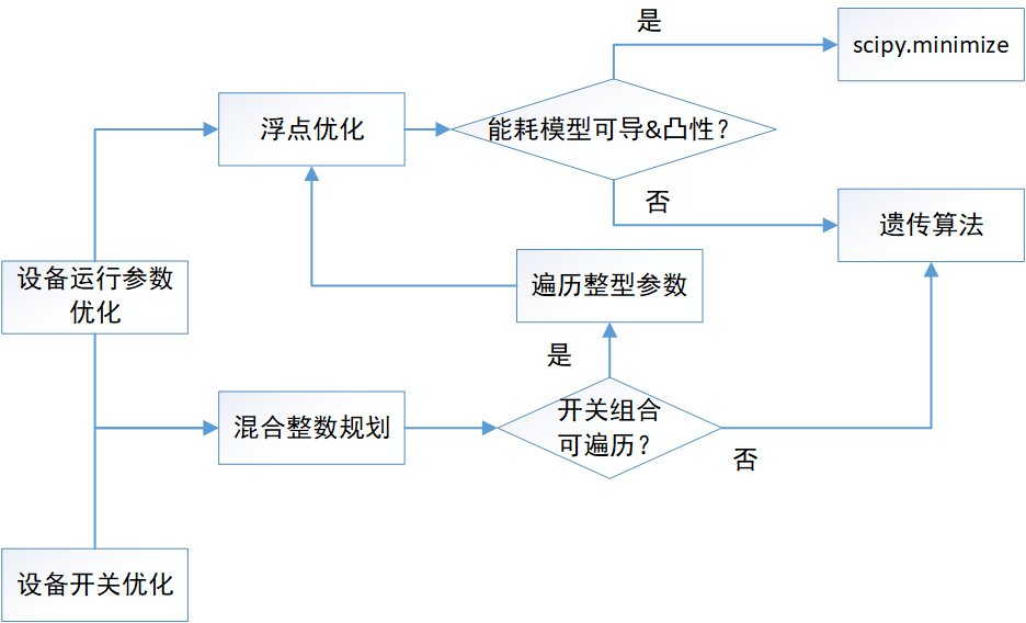 根據(jù)歷史數(shù)據(jù),采用回歸模型及時序預(yù)測模型,提取與能耗相關(guān)的特征,采用標(biāo)準化的特征預(yù)處理,以能耗值作為目標(biāo)列,進行模型擬合,進而實時獲取數(shù)據(jù)并預(yù)處理,其目標(biāo)是為了在已知負載、環(huán)境變量(室外溫濕度等)的前提下,預(yù)知各設(shè)備處于不同開關(guān)狀態(tài)組合和不同的控制量設(shè)定值時,系統(tǒng)將產(chǎn)生多少能耗,通過能耗預(yù)測值對接優(yōu)化算法;以降低能耗值為目標(biāo),在滿足約束條件的基礎(chǔ)上,通過調(diào)整各可控變量,使得目標(biāo)量降低,從而實現(xiàn)節(jié)能的目的。
