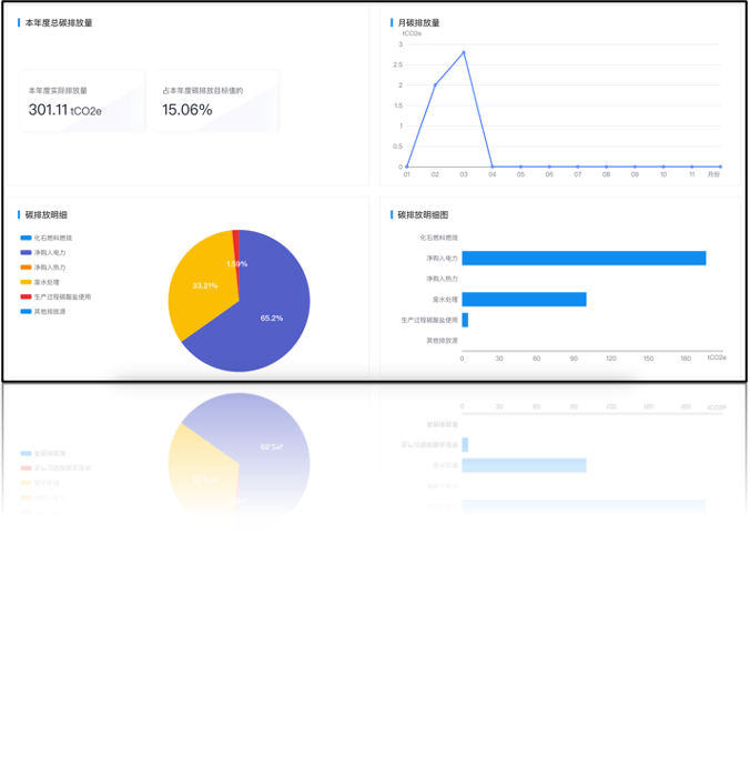 碳排放可信核算與及時監控:系統自動計算出的碳排數據,并可從不同時間周期、排放源類型等多種維度進行展現、統計分析,幫助用戶快速洞察碳排情況,幫助企業做到“摸清家底” “精細管理”。