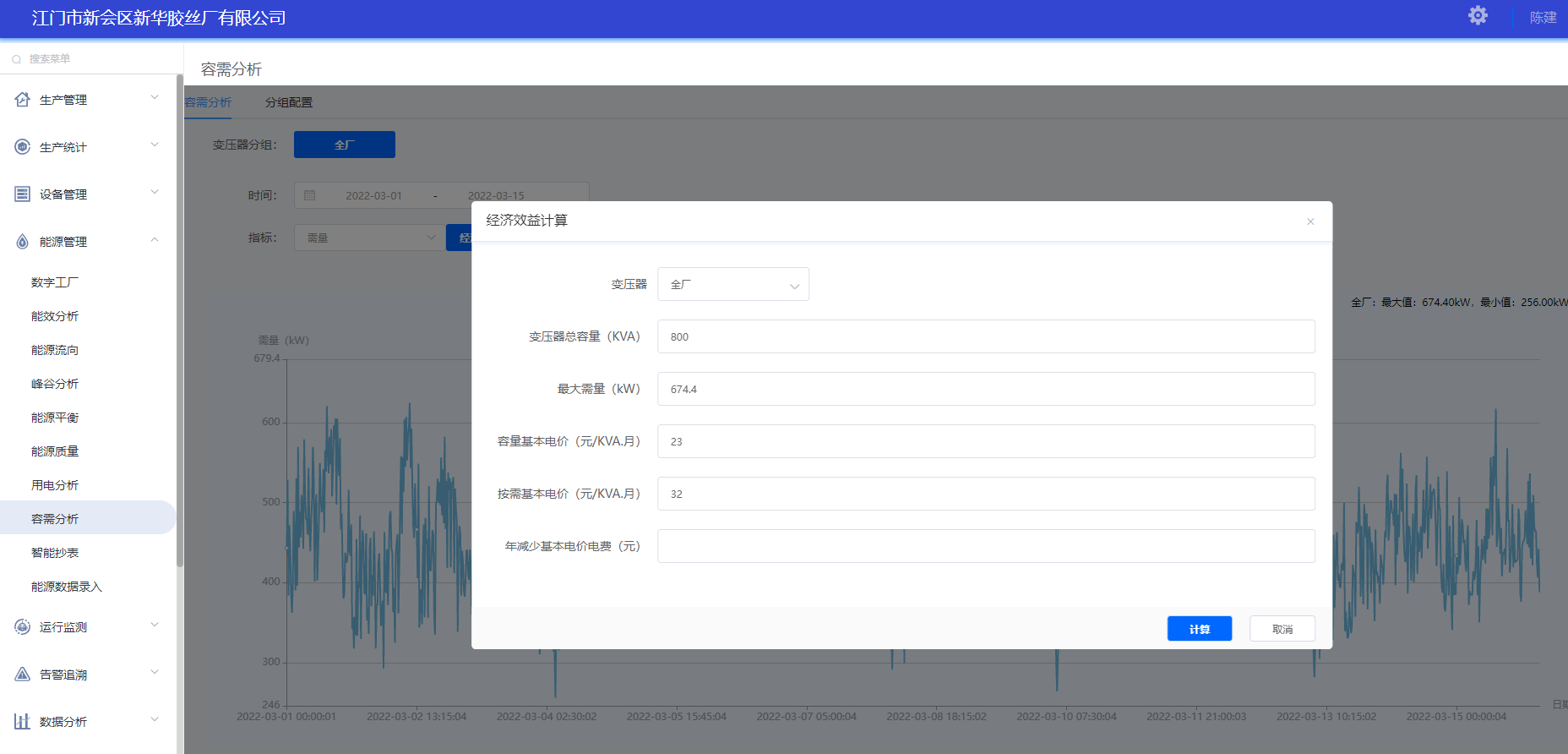 根據新華膠絲廠實際變壓器申報情況進行分組配置,通過統計計算變壓器分組負載率閾值區間范圍,得出最大容量,進行經濟效益計算,數據分析得出新華膠絲廠按需申報可以節省的基本電價電費。